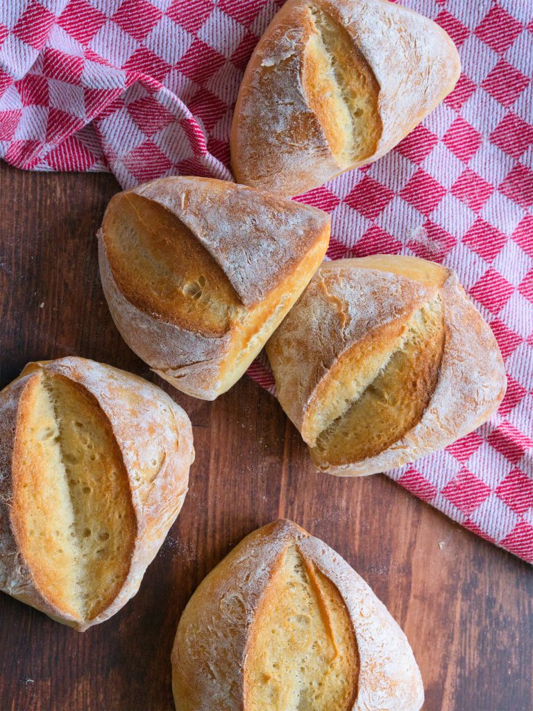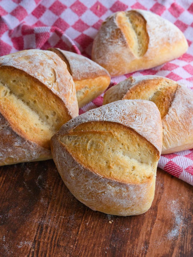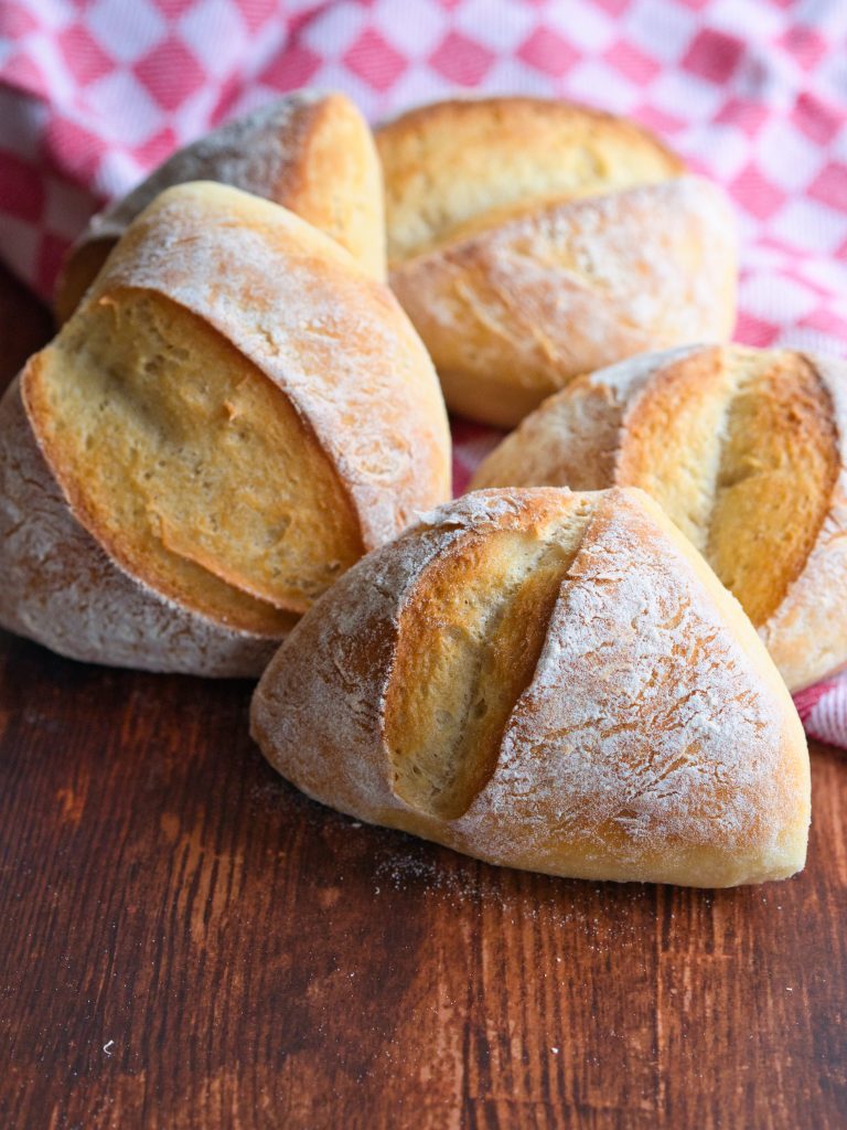 Das Ergebnis sind wunderbar unkomplizierte Brötchen mit einer angenehmen, ganz milden Säure im Teig. Außerdem werden sie schön weich und der Aufwand hält sich in Grenzen, also perfekt für Frühstücksbrötchen.