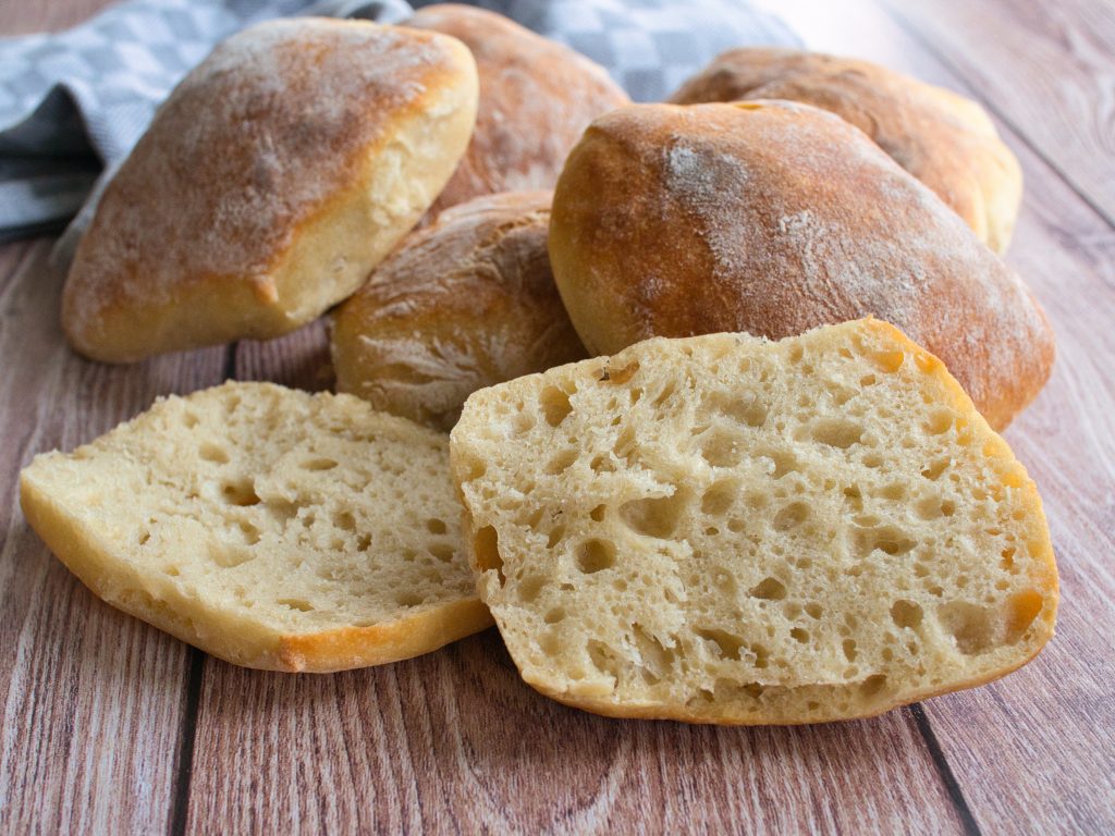 Lievito Madre ist dabei besonders interessant, weil er im Vergleich zu anderen Sauerteigen deutlich milder und weniger säuerlich ist, gleichzeitig aber eine sehr zuverlässige Triebkraft mitbringt. Dadurch bekommt der Teig genau die nötige Lockerheit und Luftigkeit, ohne dass zusätzliche Hefe nötig ist. Die Brötchen werden schön fluffig und entwickeln eine angenehme, weiche Krume.